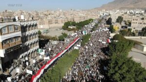 شهدت العاصمة صنعاء عصر اليوم، مسيرة جماهيرية كبرى تنديداً بإحراق نسخة من المصحف الشريف من قبل متطرفين في السويد، تحت شعار “مسيرة غضب شعب الإيمان ضد من حرقوا القرآن”.