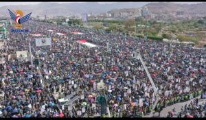 كما جددّت الحشود في المسيرة، تفويضها المطلق لقائد الثورة السيد عبدالملك بدر الدين الحوثي، والاستعداد الكامل لتنفيذ أي خيارات يوجه بها في إطار معركة “الفتح الموعود والجهاد المقدس”.