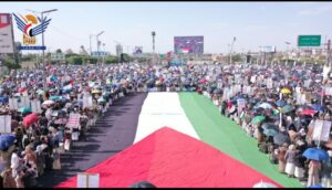 شهد ميدان السبعين في العاصمة صنعاء اليوم، مسيرة جماهيرية كبرى تحت شعار ” نصرة لغزة.. مسيراتنا مستمرة، وعملياتنا متصاعدة”.